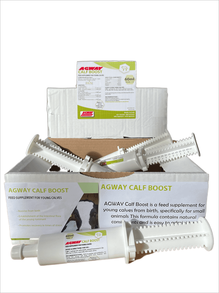 Agway Calf Boost is a feed supplement for young calves at birth. This formula contains natural constituents as well as colostrum and is easy to administer.